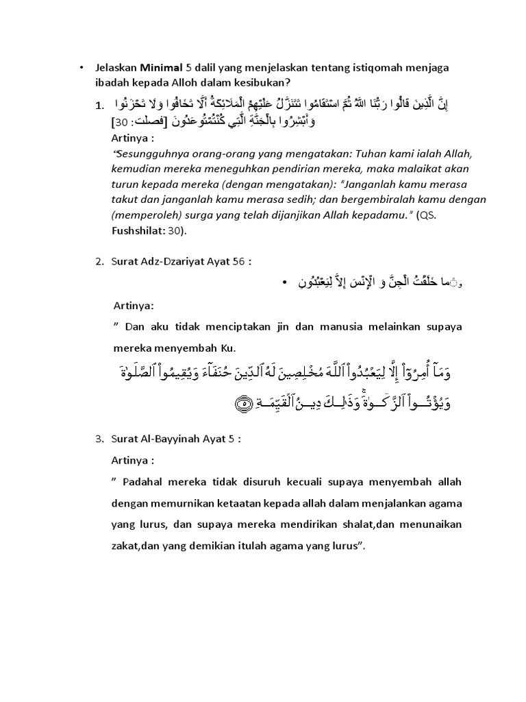 Sebutkan Dalil Naqli Tentang Istiqomah 2 Saja Brainly Co Id
